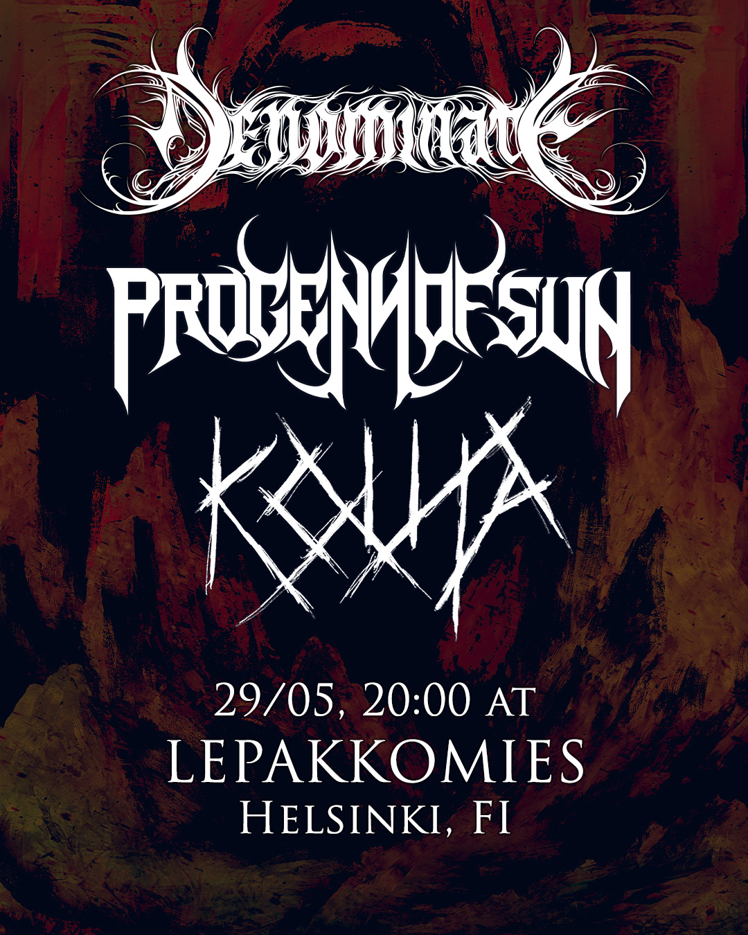 Progeny of Sun ja Denominate jatkavat kiertueensa kuolon vöyrä eteläänpäin Helsinkiin Koudan tuella, täyttäen Lepakkomiehen ja Helsingin illan kauniilla mustalla kuolemalla.
