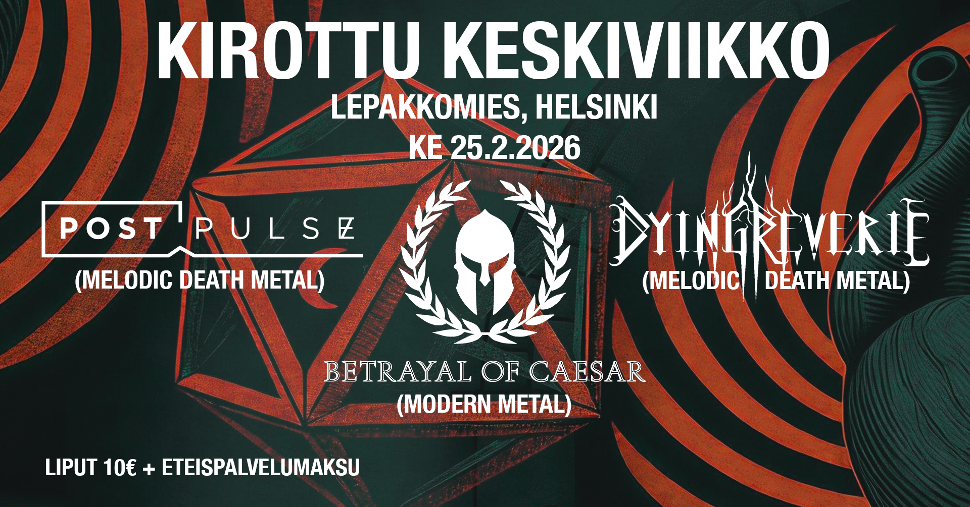 Helsinkiläinen melodeath jyrä Post Pulse julkaisee loppu keväästä kolmannen albumin, minkä ensimmäinen single ’Not My War’ näkee päivänvalon torstaina 22.1.2026. Post Pulsen edellinen levy ’Return to the Halls’ (2024) on moderni, eri genreistä kuten pop, jazz ja EDM hienovaraisia vaikutteita imenyt melodeath teos. Kirottuun keskiviikkoon valmisteltu brutaali setti on läpileikkaus bändin kymmenen vuotisen uran kohokohdista – tuoreinta materiaalia unohtamatta.
