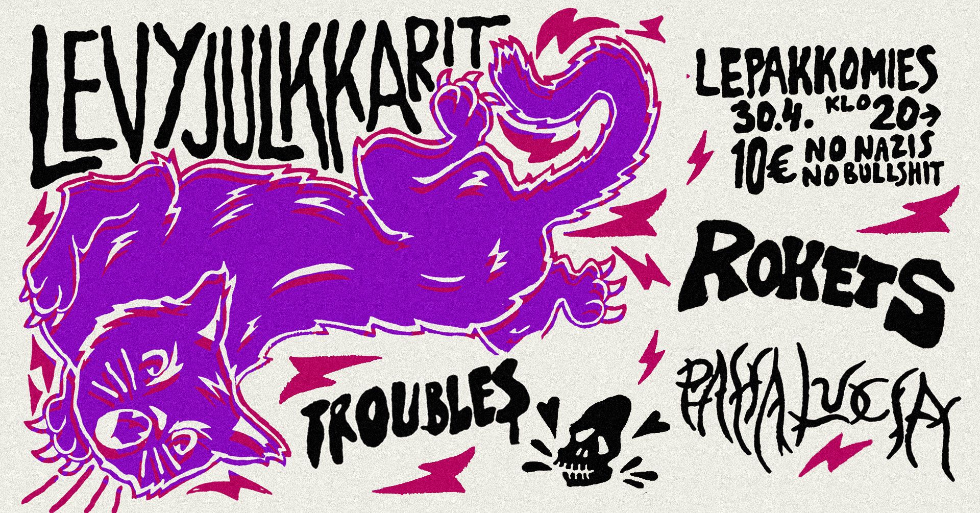From Sörkka garage with love! Helsinkiläisen garage trio Troublesin meno on mukavan rosoista, bändin biisit iskevät tajuntaan lujaa ja hommasta huokuu vahva punk scenestä hankittu DIY-mentaliteetti.