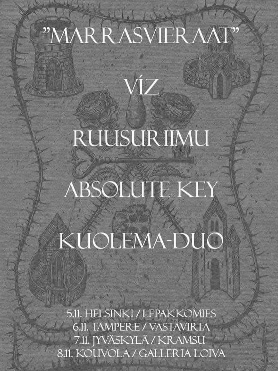 Marraskuussa Suomenmaan keikkapaikkojen ovilla koputtelevat Marrasvieraat, kun neljä marginaalimusiikin tummempaa laitaa edustavaa yhtyettä ja artistia kiertää maata neljän päivämäärän verran.
